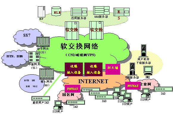 對于部署在專網(wǎng)上的TG及AG/部分IAD設備 當用戶發(fā)起業(yè)務請求時,網(wǎng)關設備將根據(jù)預設的SS IP地址將呼叫送至相應的SS。