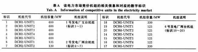 結合實際報價數據并參照圖2的聚類結果,可以發現將聚類結果分4類與實際報價情況比較吻合。其中8號發電廠4臺機組的報價最高,歸為一類;1號發電廠5臺機組報價較高,歸為一類;3號發電廠2臺機組及其他報價次高機組歸為一類;其他報價普遍較低的機組歸為一類 。