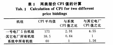 對聚類分析得到的兩類電廠報價分別計算CPI值,如表1所示。