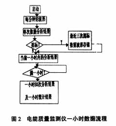 從監(jiān)測儀啟動(dòng)開始,就開始了對監(jiān)測點(diǎn)數(shù)據(jù)的采樣、分析、處理,然后生成監(jiān)測點(diǎn)一天的采集數(shù)據(jù)文件,圖2給出了監(jiān)測儀在一小時(shí)內(nèi)的數(shù)據(jù)流程。