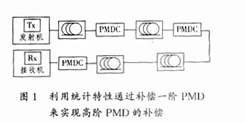 (2) PMD補償技術是近年的研究熱點.補償可分為一階補償和高階補償,一階補償主要是利用主偏振態(PSP)理論[2],分為PSP傳輸法和后置補償法兩種.而高階補償則主要是使補償網絡的傳輸矩陣與光纖的傳輸矩陣正好互逆,實現起來比較復雜.