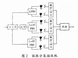 (2) 利用偏振分集接收機.其原理是不同的偏振態具有不同的噪聲特性,因而用多個接收機可以大大消除噪聲的影響[2].