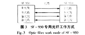 SF-950專用光纖通道應用方式如圖3所示,兩臺SF-950之間直接用光纜連接起來作為通道,可以采用單路光纖通道或雙路自動切換雙光纖通道。