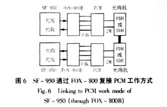 SF-950可以直接采取與之配套的FOX-800BFOX-800B光電轉換器聯(lián)合使用,如圖6所示。采用此種方式,可將SF-950放在保護室,FOX-800B放于通信室,FOX-800B復接PCM傳輸。