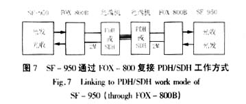 SF-950可以直接采取與之配套的FOX-800B光電轉換器聯(lián)合使用,如圖7所示。采用此種方式,可將SF-950放在保護室,FOX-800B放于通信室, FOX-800B復接SDH/PDH傳輸。
