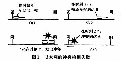 如圖1(d)所示,沖突的信號需要再經時間τ才能到達主機A。