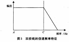 如圖3所示,雙絞線的頻率特性正是一個低通信道,可 以等幅衰減的通過從A點(低頻)到C點頻率的諧波。當線纜距離過長時,會造成AC之間的距離變窄及等幅衰減通過諧波數量下降。