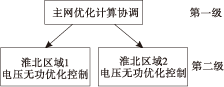 根據(jù)淮北地區(qū)電網(wǎng)220kV主網(wǎng)環(huán)網(wǎng)運(yùn)行、110kV網(wǎng)絡(luò)輻射狀運(yùn)行特點(diǎn),電壓無(wú)功優(yōu)化采取分層分區(qū)控制模式,兩層相互協(xié)調(diào)。第二級(jí)為全網(wǎng)協(xié)調(diào),第一級(jí)為區(qū)域電壓無(wú)功集中控制系統(tǒng)。系統(tǒng)的控制模式如圖2所示。