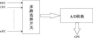 由于需要遙測多路模擬量,并且各路模擬量要公用一路A/D轉換器,所以需用多路選擇開關,在CPU的控制下,定時接通和斷開,輪番對裝置的各路模擬量進行A/D轉換,采樣值送入并行接口供CPU進行處理。