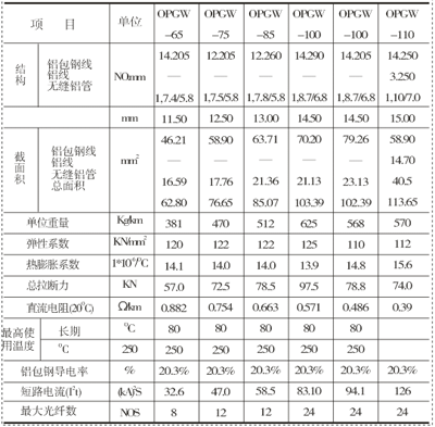 三、OPGW主要技術參數