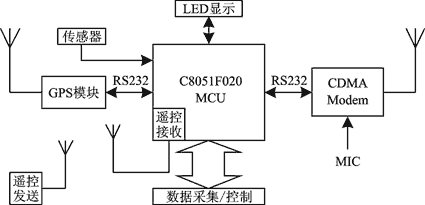 移動(dòng)終端利用C8051F020芯片控制實(shí)現(xiàn),不用另行擴(kuò)展串口、ROM以及RAM。此硬件結(jié)構(gòu)并不僅僅局限在定位功能上,對(duì)于很多數(shù)據(jù)采集/控制應(yīng)用也可以滿足要求,只需改變程序結(jié)構(gòu)。正是由于C8051F020的功能強(qiáng)大,使得硬件的組成和結(jié)構(gòu)都變得非常簡(jiǎn)單。