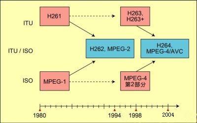 多少年來(lái),在視頻壓縮算法/壓縮標(biāo)準(zhǔn)上并行著兩個(gè)國(guó)際組織的開(kāi)發(fā)過(guò)程:1. H標(biāo)準(zhǔn),這是由ITU(國(guó)際電信聯(lián)盟)所開(kāi)發(fā)的標(biāo)準(zhǔn)。2. MPEG標(biāo)準(zhǔn),這是由MPEG委員會(huì)、后來(lái)又經(jīng)lSO(國(guó)際標(biāo)準(zhǔn)組織)所批準(zhǔn)的標(biāo)準(zhǔn)。