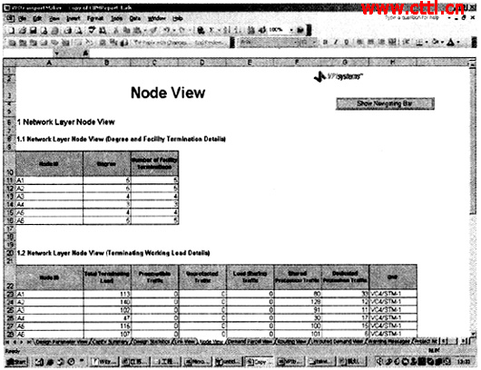 一般而言,我們比較關心的信息都反映在Node和Route兩張表單中,其中Node表單中主要反映了每個節點的設備和端口以及支路端口情況信息(參見圖1)。
