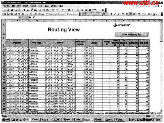 路由情況可參見Route表單(如圖2所示),整個網絡所有業務的路由安排情況(也就是傳統網絡的通路組織圖),端到端業務的工作路徑和保護路徑及所占用的時隙在Route表中都有明確的體現。
