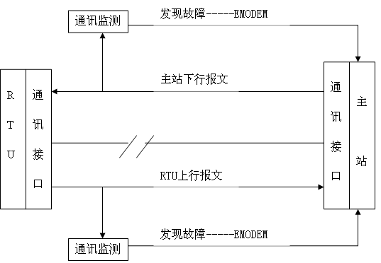 RTU與主站連接的橋梁.它的好壞直接關(guān)系到信息的發(fā)送與接收所以及時(shí)發(fā)現(xiàn)通道故障有利于信息的傳送、有利于現(xiàn)場(chǎng)故障的解決、減少經(jīng)濟(jì)損失。該裝置通過(guò)對(duì)主站下行報(bào)文及RTU上傳報(bào)文的監(jiān)測(cè)經(jīng)過(guò)嚴(yán)密的邏輯組合找出故障點(diǎn)(如:RTU故障、下行通道故障、上行通道故障等)。故障產(chǎn)生后立即啟動(dòng)EMODEM(撥號(hào)調(diào)制解調(diào)器)經(jīng)電話線把故障點(diǎn)通知主站。主站接收正確后通知EMODEM掛機(jī)。這樣既可以減少占線時(shí)間又可以節(jié)省電話費(fèi)用。為了防止因通訊監(jiān)測(cè)裝置自身故障而誤傳