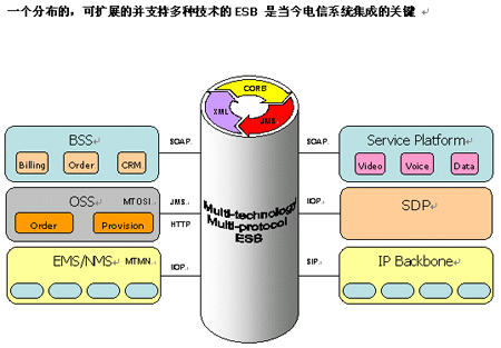 實現(xiàn) MTOSI 要求ESB 支持多種技術(shù),包括: