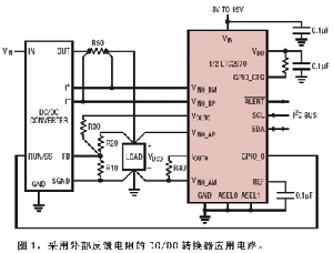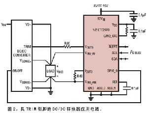 圖1顯示的是用外部反饋電阻對DC/DC轉換器進行監視和裕度控制的典型應用電路。