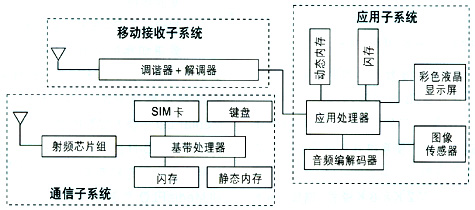 圖4為具有接收移動電視廣播功能的手機架構。該架構由三個主要的子系統構成:通信子系統、應用子系統和移動接收子系統。我們將重點討論關于移動接收和應用子系統相關的解決方案。