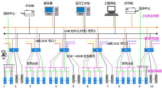 由眾多的保護(hù)和自動裝置構(gòu)成,包括發(fā)電機(jī)保護(hù),主變保護(hù),高廠變,AVR,ATS(快切),自動準(zhǔn)同期裝置,廠用保護(hù)測控裝置和自動裝置(電動機(jī)、變壓器、電源分支、母線分段、饋線等保護(hù)及分支開關(guān)同期合閘等),及400V智能脫扣器、400V備自投等。這些裝置具有測量、控制、保護(hù)、信號、通信等基本功能,并完成各自的特殊功能。該級裝置數(shù)量眾多且分散,利用現(xiàn)場總線技術(shù),可以實現(xiàn)這些裝置的分散控制。