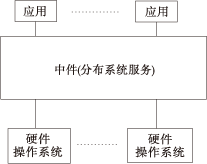 為解決分布異構問題,人們提出了中間件(middleware)的概念。中間件是位于平臺(硬件和操作系統(tǒng))和應用之間的通用服務,如圖1所示,這些服務具有標準的程序接口和協(xié)議。針對不同的操作系統(tǒng)和硬件平臺,它們可以有符合接口和協(xié)議規(guī)范的多種實現(xiàn)。