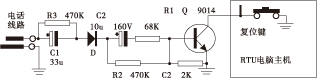 電路如圖1所示,它是通過電話的振鈴信號實現(xiàn)遙控功能。當(dāng)電話被撥打時,120V左右的交流振鈴電壓通過電容C1、二極管D及電容C2、電阻R1使三極管Q飽和導(dǎo)通,也即使電腦主機的復(fù)位鍵短路,從而實現(xiàn)電腦主機的重啟。