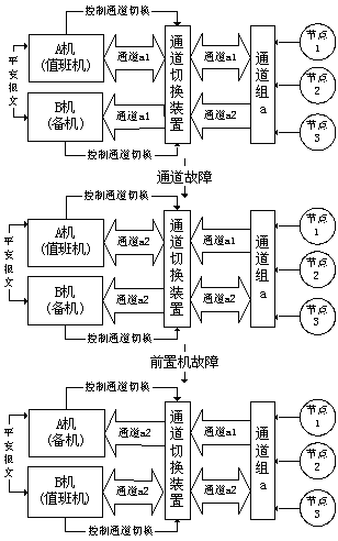 信息都經值班前置機處理后發送至后臺,當值班前置機發生故障后,備用機就自動轉入值班狀態。對于雙前置機、雙通道系統其傳統運行切換方式有以下三種。