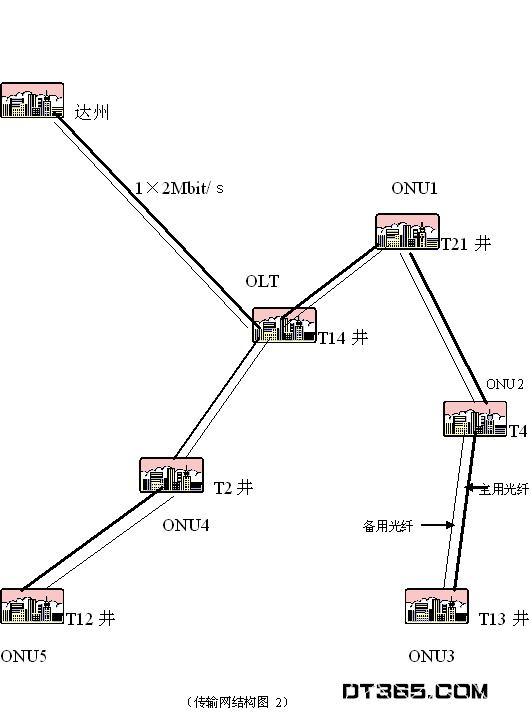 2. 用戶側(cè)光纖網(wǎng)絡(luò)單元(ONU)根據(jù)不同的要求配置,最多可提供16個E1,本工程采用2個E1。