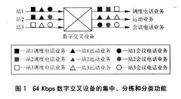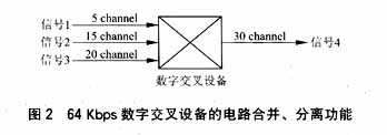 由于64 Kbps數字交叉設備具備靈活的交叉配置功能,所以,可利用該設備,并通過合理的方案設計和交叉功能運用來解決以上所述問題。