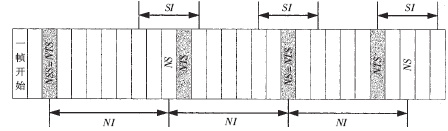 在網絡登陸階段,系統選擇信息傳輸的第一個時隙, 以便讓鏈路上的其它站臺發現自己。首次發送的信息總是船位報告,發射該報告的時隙NSS應當在當前時隙至未來標稱增量NI的時間范圍內隨機選擇。該時隙作為第一幀階段選擇標稱時隙NS的參考,如圖2所示。NI為: