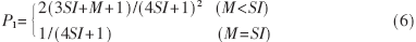 (2)而當不完全重合即M< SI時,則有兩種情況,可能從左邊,也可能從右邊重合。即: P02=2×(3SI+M+1)/(4SI+1)2 (5)