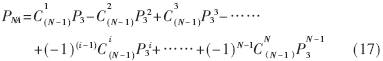 依次推導,可得N艘船存在時,其中一艘船發送一個報文時發生沖突的概率為: