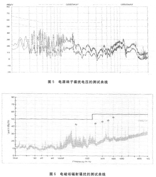 圖5為電源端子騷擾電壓的測(cè)試曲線。測(cè)試環(huán)境為23℃,69%TH,lOl kPa,按照GB9254-1998的測(cè)試方法進(jìn)行測(cè)試。由圖5可知,符合國(guó)標(biāo)要求。