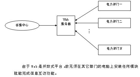 建議在系統(tǒng)局域網(wǎng)內(nèi)設(shè)一Web服務(wù)器,作為客服中心與電力各部門、各計(jì)算機(jī)系統(tǒng)間衍接的橋梁。