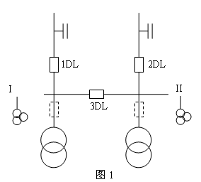 橋接線的主接線形式(如圖2),且一線帶兩變的,如果#1變差動保護動作,跳開1DL、3DL,兩條母線同時失電,備自投裝置應啟動,合上2DL,繼續對#2變供電。