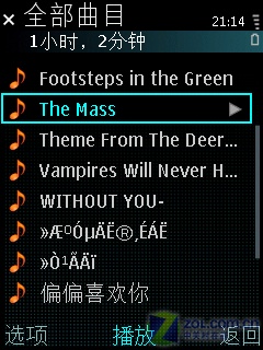 主打影音功能的5800XM自然在這方面擁有不俗的表現,Symbian OS v9.4采用的全新的S60播放器配合全新的觸摸式給大家帶來了非同一般的用戶體驗。該播放器支持目前市面上的主流音樂格式,視屏方面則支持MPEG4/WMV/3gp格式的全屏播放,十分不錯。