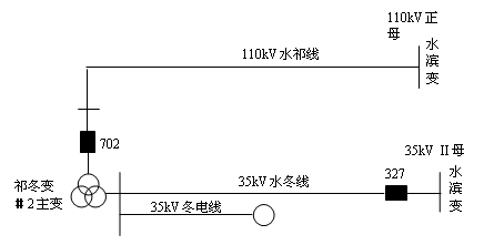 07—13 因祁冬變#2主變702C相流變漏油停電消缺處理, #2主變將由35kV水冬線轉供,調度發令合環調電操作,環路簡圖見圖一,7時28分,合上220kV水濱變水冬327開關(合環),合環運行4分鐘后,即7時32分8.94秒祁冬變110kV線路備自投閉鎖,7時32分9.02秒主電源祁水712開關跳閘,跳主電源的同時,聯切與地區電廠聯絡的聯絡線之一祁電389線,該聯絡線當時運行方式為空充線路,另一聯絡線冬電386線因開關跳閘線圈燒毀拒跳,未能實現聯切,也因此避免了地區電廠與系統解列事故發生,電廠出力12MW,跳閘前備自投動作燈未亮,缺少備自投動作信息,7時32分9.88秒備用電源祁長716開關合閘。7時32分10.88秒備自投放電。查歷史電流、電壓曲線,動作前即