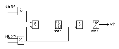 WJBK-2C-53B,為雙向線路式,祁水線、祁長線互為備用電源,備自投動作后,5.5S跳開失壓回路的進線開關,同時聯切35kV祁電、冬電線,0.5S后合上另一進線開關。軟件版本已升級為V7.0,強化了投入功能,將“放電”與“閉鎖”嚴格區分開。動作邏輯有三部分:充放電條件、起動(允許)條件(與)和閉鎖條件(或)。充放電條件有開關的狀態、控制字狀態,充電時間定值5S。起動條件有線路無壓、母線無壓,本裝置為母線無壓,定值為25V,因主備電源進線均無線路電壓互感器(以下簡稱PT),并且110kV母線接線方式為單(正)母線帶旁母,電壓取自110kV正母線,PT為三相式,裝置采集UAB和UBC,有壓定值70V,無壓定值25V。閉鎖條件有工作線路有流、過流閉鎖、控制字退出等。本裝置閉鎖條件有工作線路有流,過流閉鎖,有壓閉鎖,有流定值36A/0.3A(600/5)。當裝置處于閉鎖備自投條件時,說明該裝置起動條件已滿足,只不過閉鎖條件解除均未滿足。一旦其中滿足一個或幾個閉鎖條件解除,裝置已滿足“充電”而直接進行備投動作。該備自投裝置實現動作的簡單邏輯框圖見圖2。