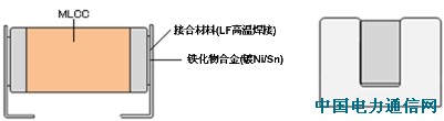 金屬端子通過接合材料(LF高溫焊接)與電容器的外部電極相結合,使金屬端子成為接合電路板的媒介。金屬端子的形狀采用能夠降低嘯叫效果的U字形。它只是與電容器上壓電效應比較小的WT面外側部分結合,從而減低電容器振動的傳遞。