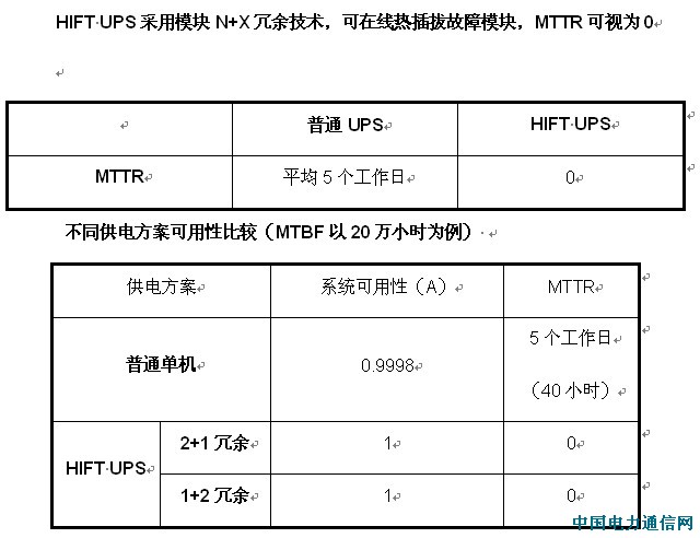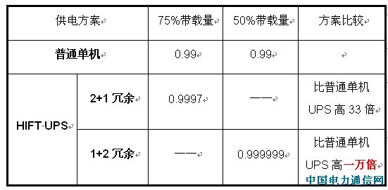 HIFT UPS組成的N+X冗余供電系統,系統的實際負載量占設備容量的大小與系統的可靠度息息相關,實際負載量越低,系統冗余度越高,系統可靠度也就越高。這恰恰是普通UPS所無法比擬的。