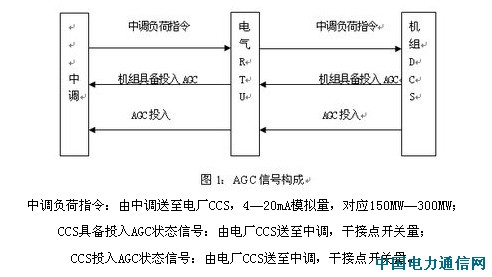 AGC涉及到以下設備:中調側指令、電氣側RTU、鍋爐和汽機DCS系統。信號傳遞示意如圖1。