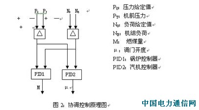 大型單元機組在生產工藝流程上是個密切聯系的整體,是個多輸入多輸出的系統,對象特性極其復雜。協調控制系統的基本特點是:汽機調節器和鍋爐調節器同時承擔功率和機前壓力調節任務,而且它們協調工作,故稱為協調控制系統。按經典控制理論,其主要輸入信號為汽機調節閥開度和燃燒率M,輸出信號為機前壓力和發電機實發功率。