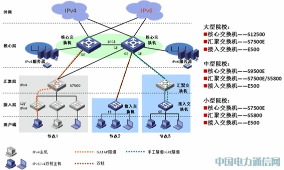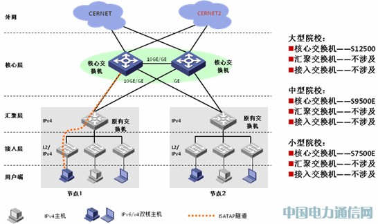 Ø IPv6用戶接入方式:IPv6/Iv4主機可采用ISATA隧道方式直接接入核心交換機。