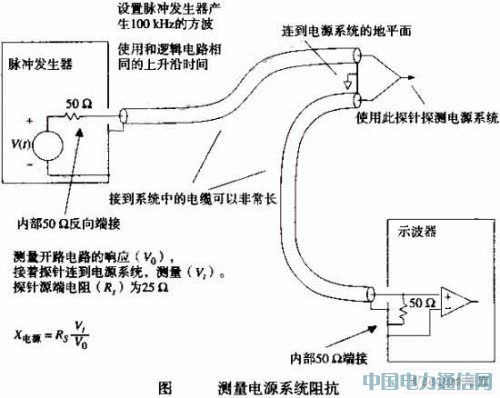 設定脈沖發生器的上升時間與實際系統中預期的上升時間相同。設定輸出階躍的幅度為5V,輸出的電流階躍是5V/25歐=0.2A。按照測量階躍響應的比例系數△I/0.2來決定電源系統對一個△I安培電流的階躍響應。