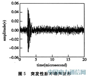 脈沖噪聲是隨時間(以ms或μs級計)變化而變化,功率譜密度較高,在數據傳輸中出現錯誤主要就是由脈沖噪聲引起,尤其是突發性脈沖噪聲。由于突發性脈沖噪聲是一隨機事件,故其特性可用隨機變量來描述。典型的突發性脈沖噪聲是因開關瞬態而引起的。這些脈沖的波形類似于衰減正弦波或重疊的衰減正弦波。