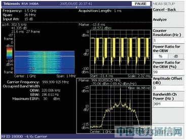 政府規(guī)定要求控制發(fā)射信號(hào)的功率、頻率、帶寬。這些規(guī)定防止有害干擾并保證每個(gè)發(fā)射者都是頻帶內(nèi)其他用戶的友好鄰居。對(duì)于許多頻譜分析儀特別是通常用于脈沖信號(hào)能量測(cè)量的掃頻頻譜分析儀,進(jìn)行此類測(cè)量是具有挑戰(zhàn)性的。RTSA 能夠分析一個(gè)完整的分組發(fā)射過(guò)程的能量特點(diǎn),也能直接測(cè)量跳頻信號(hào)的載波頻率,而無(wú)需將信號(hào)置于一個(gè)跨度的中心。按一下按鍵,分析儀就能識(shí)別一個(gè)瞬時(shí) RFID 信號(hào)的調(diào)制方式并能夠?qū)β省㈩l率和帶寬進(jìn)行監(jiān)管測(cè)量,使預(yù)一致性(pre-compliance)測(cè)試過(guò)程變得非常靈活和方便 [參閱圖2]。預(yù)一致性測(cè)試有助于確保產(chǎn)品一次通過(guò)一致性測(cè)試,而無(wú)需重新設(shè)計(jì)和重新測(cè)試。