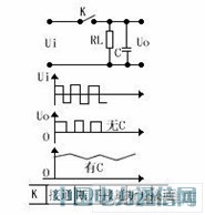 下圖是解調器的原理電路,RL為負載,C為濾波電容,其作用是使輸出直流電壓平滑,解調開關K與輸入交流信號,Ui具有相同的頻率。當Ui為正時,開關接通,輸出等于輸入電壓UO,經電容C的平滑作用后,應可得到平滑的直流電壓UO。相反,如果Ui為負時,開關接通,Ui為正時,開關斷開,則輸出端得到負的脈動直流電壓UO。