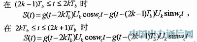 設輸入的數據為{Uk},則OQPSK已調波可以表示成: