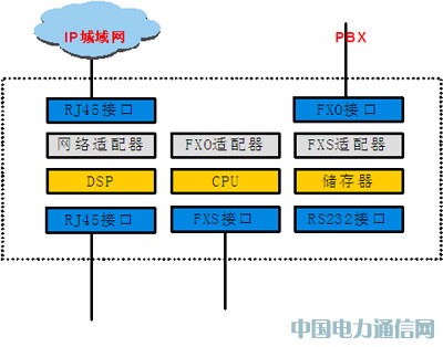 IAD 通過 FXO 模擬中繼與 PSTN 電話網連接,提供本地電話業(yè)務;通過 IP 網與運營商 VoIP 網聯結,實現 IP 長途。