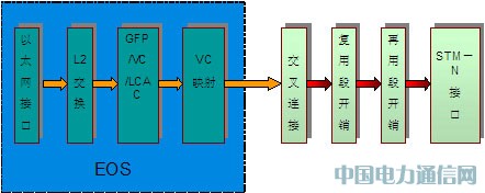 與傳統(tǒng)的PoS技術(shù)不同,EoS對(duì)三層協(xié)議透明,而且EoS芯片可直接和以太網(wǎng)物理層芯片對(duì)接,在處理以太網(wǎng)幀的映射時(shí),成本更低,效率更高。