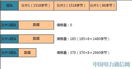 此處需要注意的是對于分片1的報頭,相對于其他兩個分片的報頭要多8個字節UDP協議報頭的開銷。因此,在計算實際傳輸的數據凈載荷時,分片1要多減去8字節UDP報頭。最后,接收主機通過包ID、標識位、偏移量值將數據重組成完整的數據。